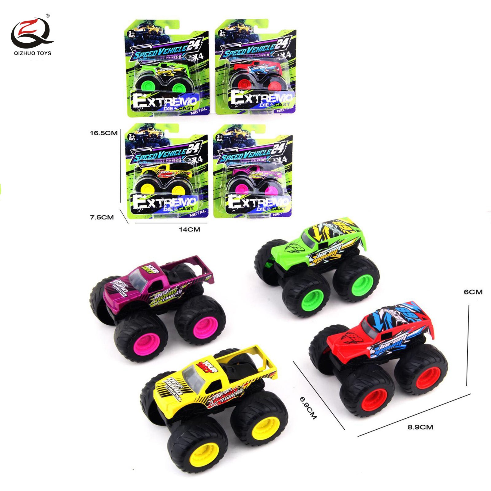 1:64 DIE CAST BIG WHEELS TRUCKS, 4 ASSORTED, FREE WHEEL
