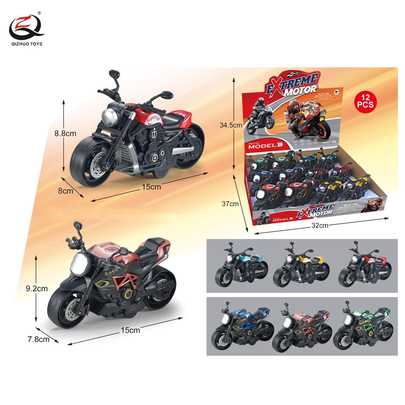 1:64 PULL BACK DIE CAST MOTORCYCLE, 2 ASSORTED