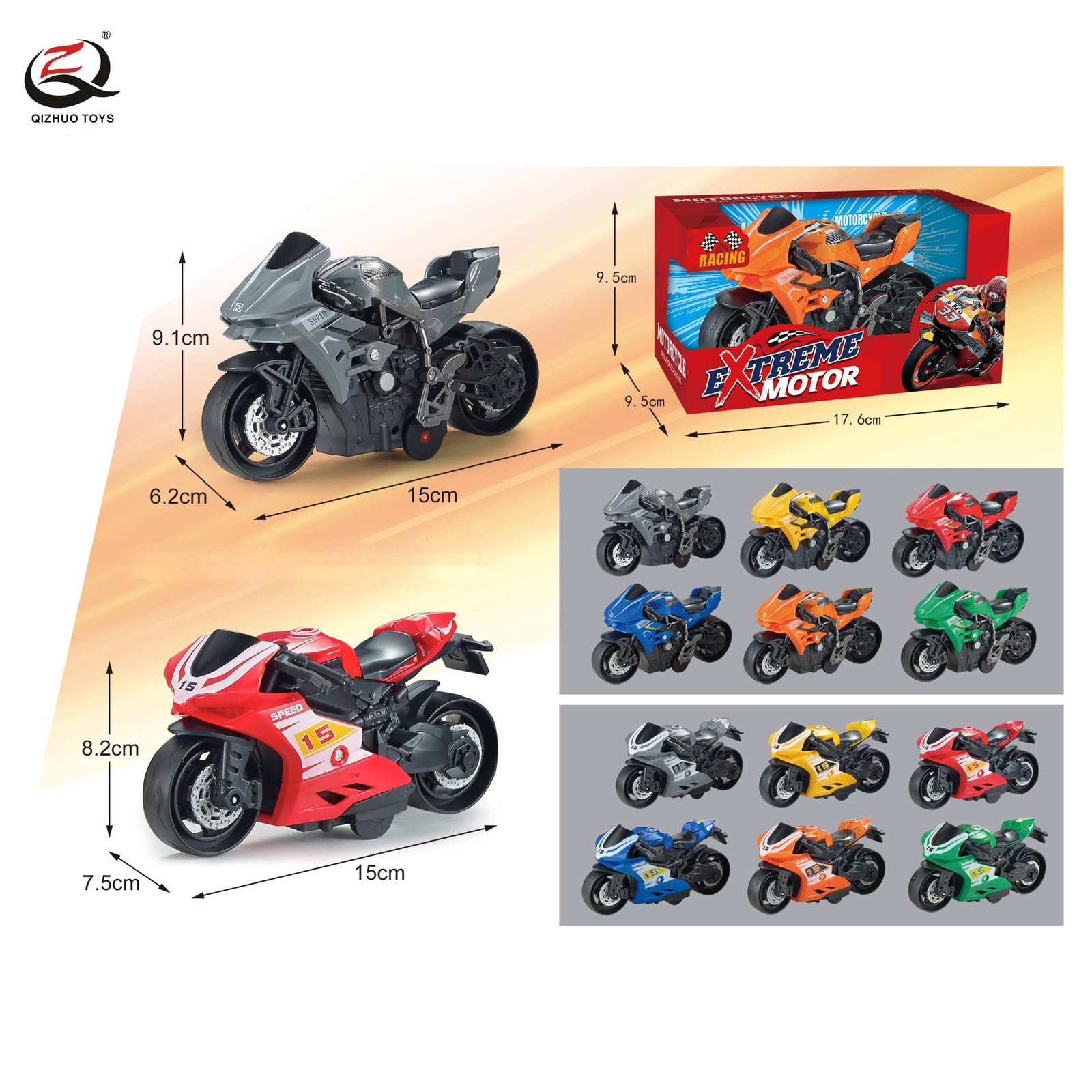 1:64 PULL BACK DIE CAST MOTORCYCLE, 2 ASSORTED