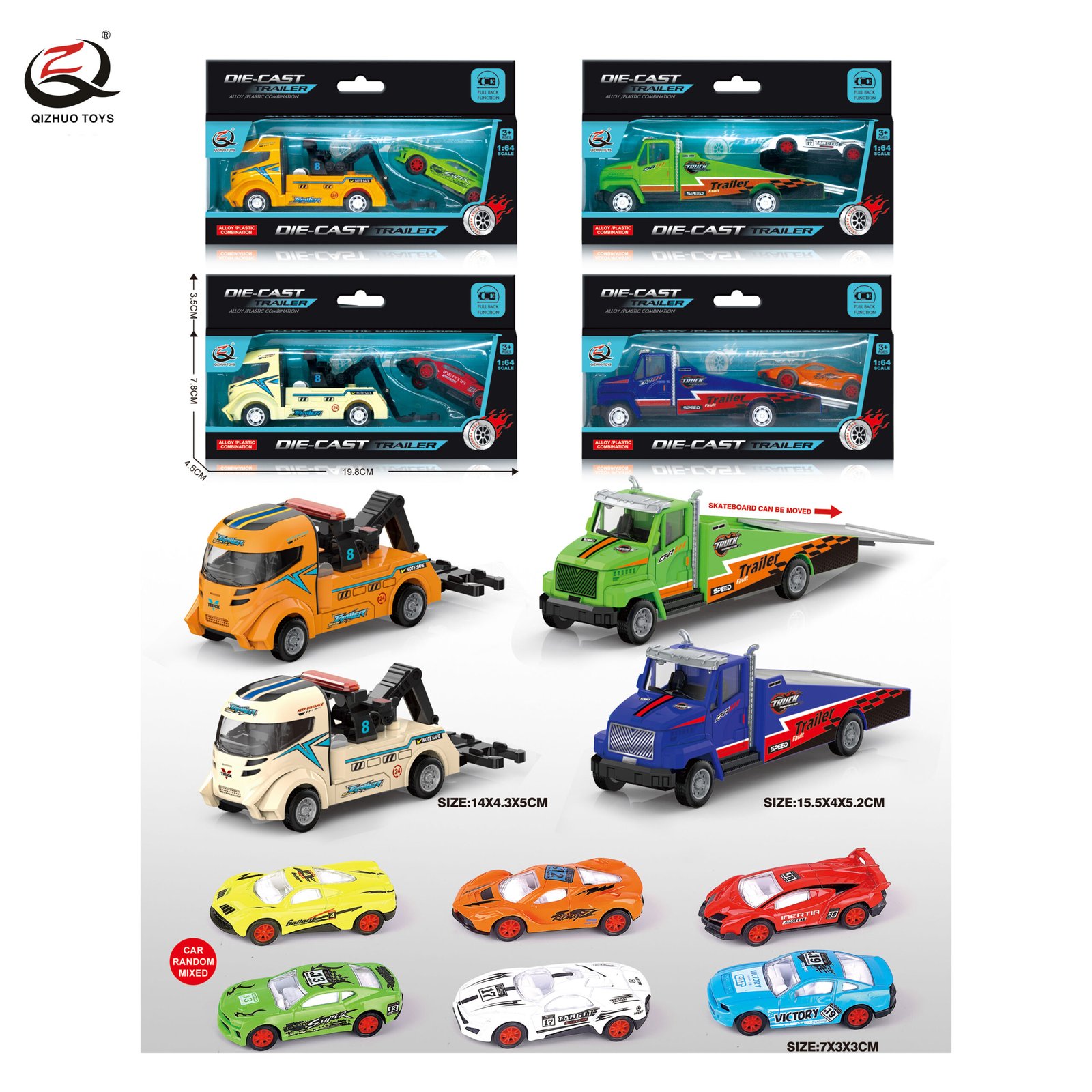 1:64 RESCUE SERIES DIE CAST TRAILER AND CARS SET,TRAILER AND CARS ARE PULL BACK,4 ASSORTMENTS (4 SMALL DIE CAST CARS IN RANDOM FROM THE 6 STYLES)