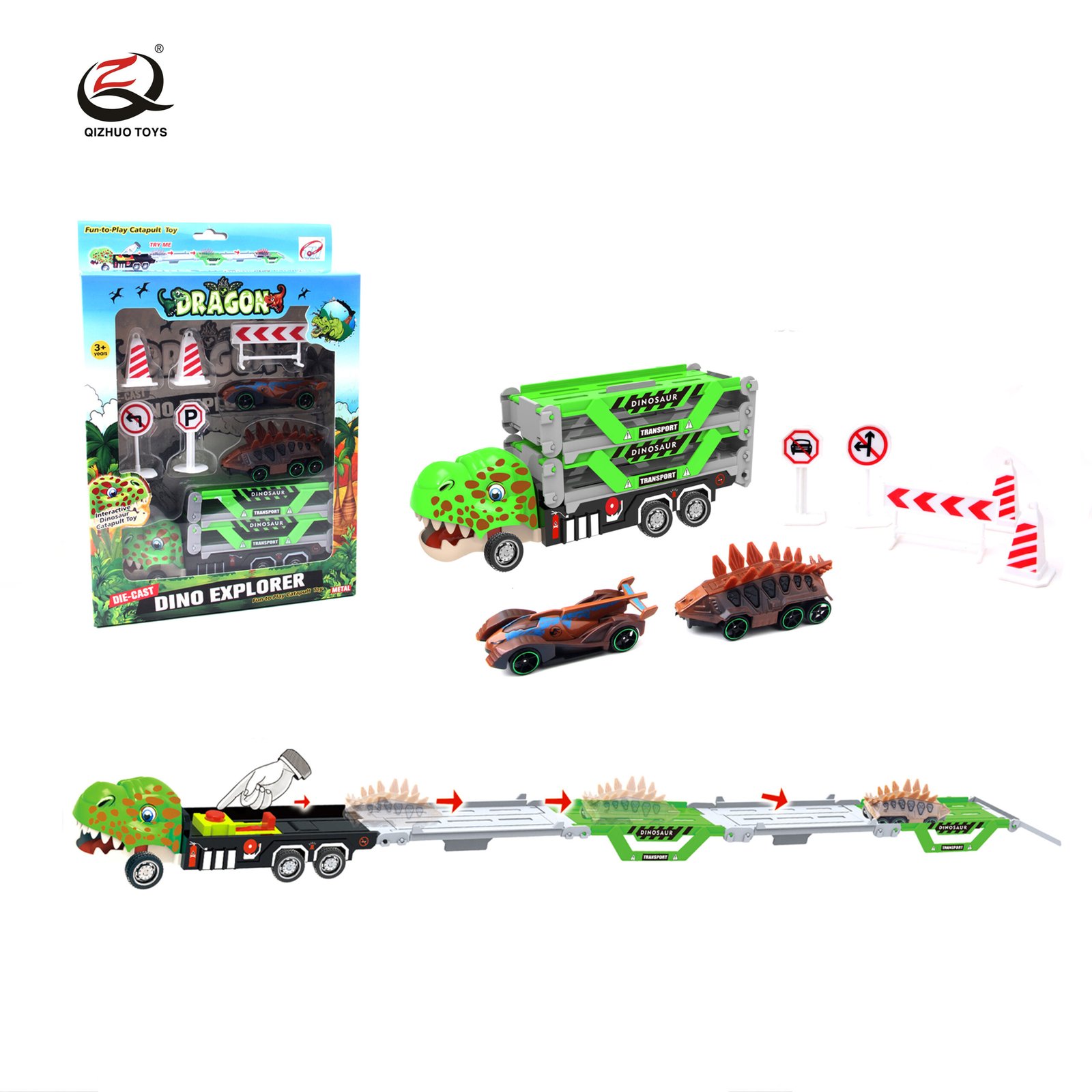 Alloy Tyrannosaurus Rex Rail Truck Set With Catapult,Truck Is Pull Back, 2 Pcs Small Car Is Free Wheel
