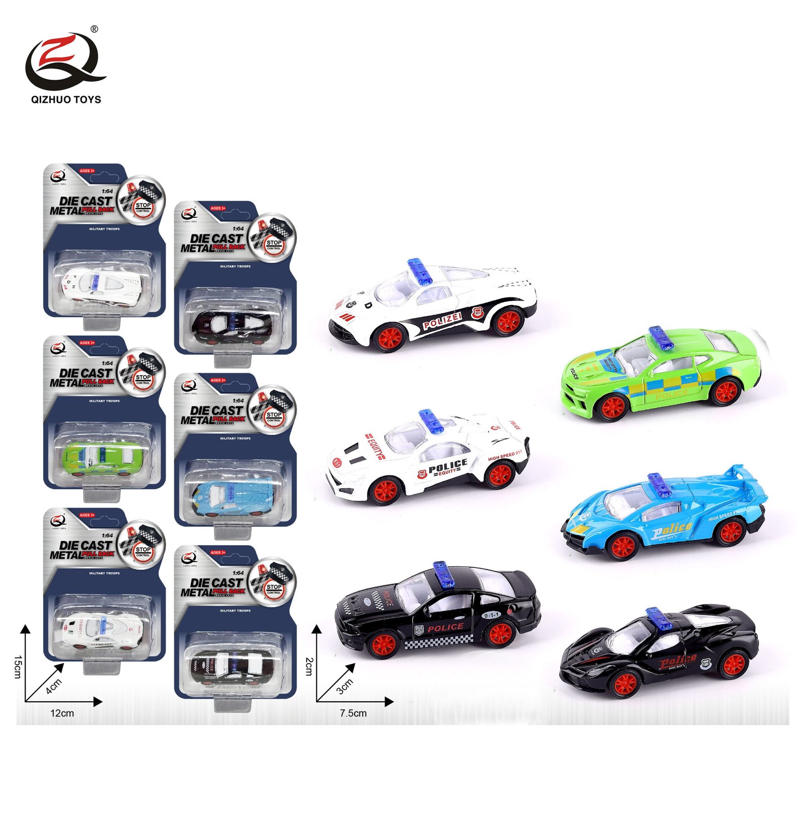 QZ614-E Scale1:64 Police Diecast Pull Back Car, 6 Assorted