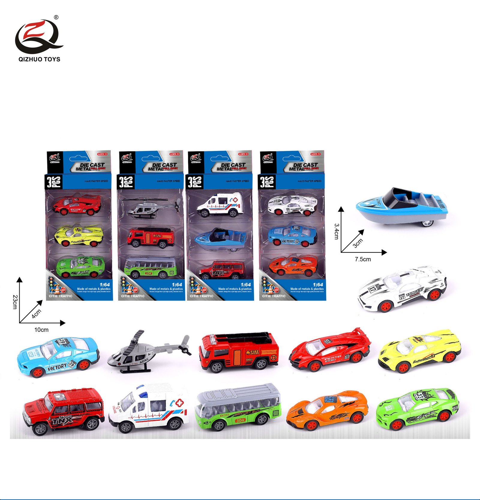 QZ616-D 3 Pcs 1:64 Engineering Diecast Pull Back Car, 4 Assorted (Copy)