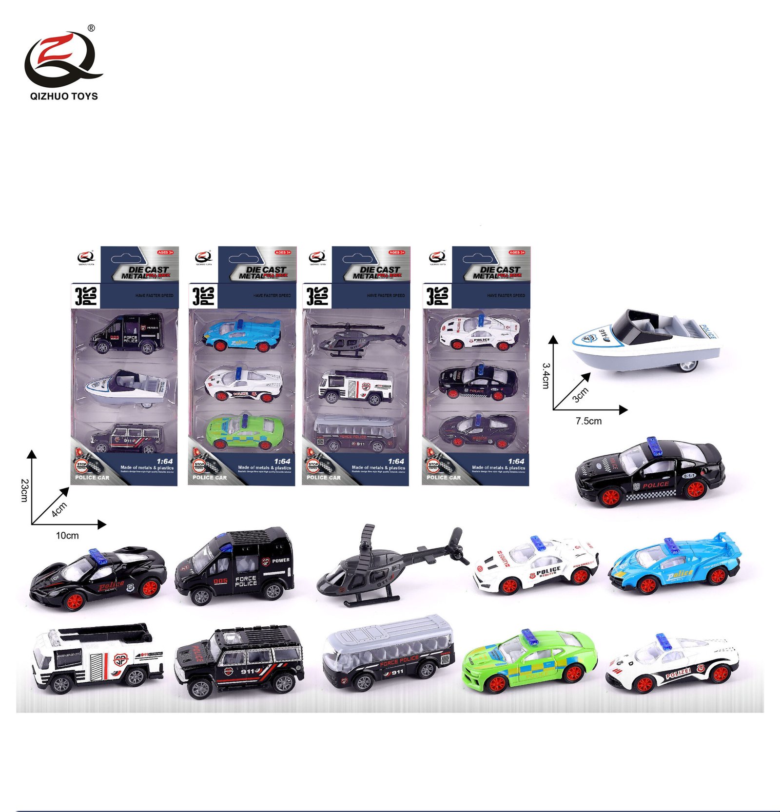 QZ616-G 3 Pcs 1:64 Police Diecast Pull Back Car, 4 Assorted