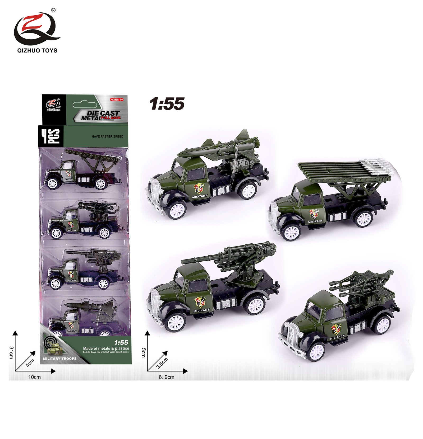 QZ620-A 4 Pcs 1:55 Military Diecast Pull Back Truck, 4 Styles