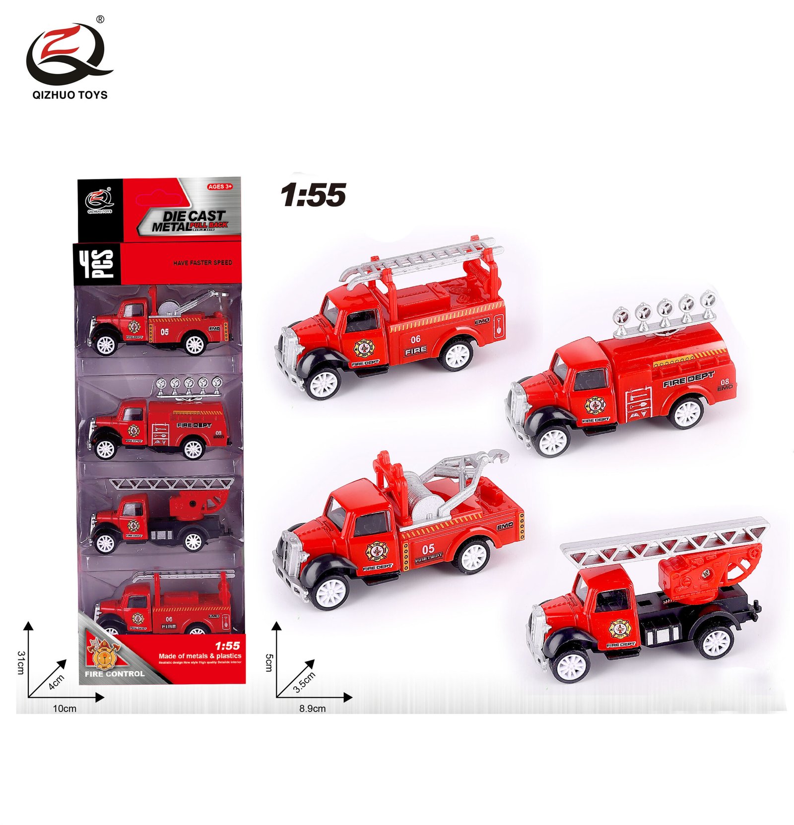 QZ620-B 4 Pcs 1:55 Military Diecast Pull Back Truck, 4 Styles