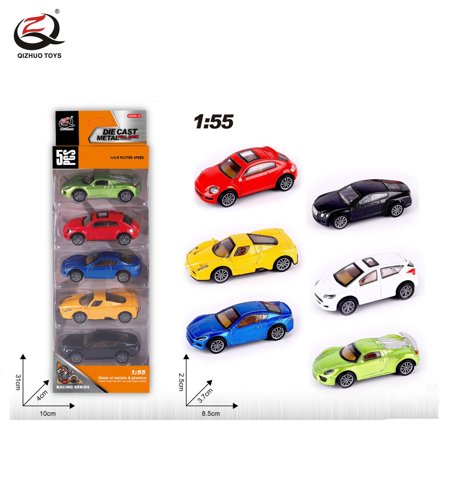 QZ624-F 5Pcs 1:55 Racing Diecast Pull Back Car, ( 5 Random Styles From The 6 Styles)