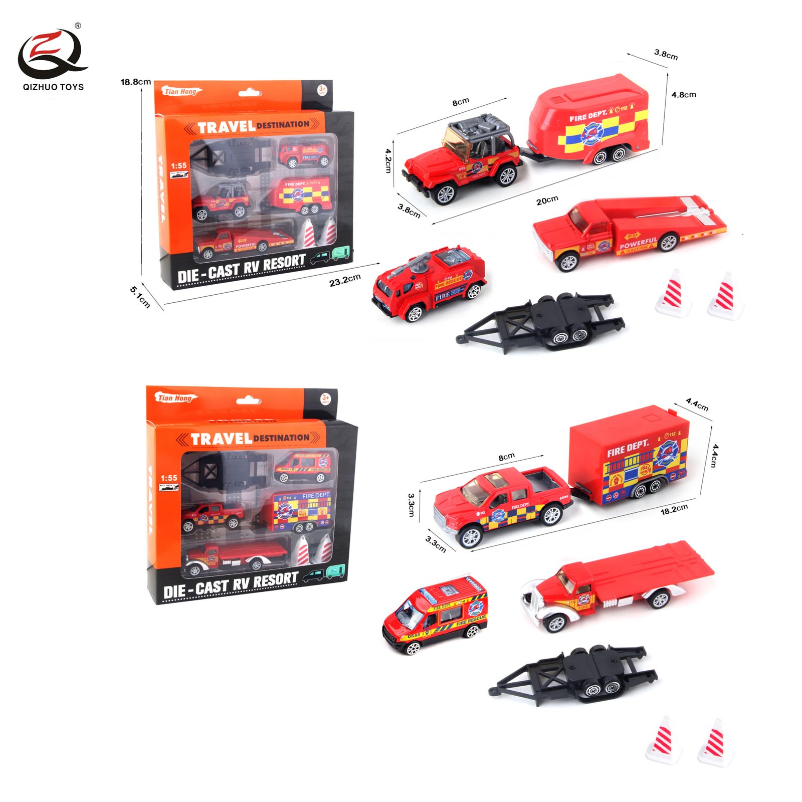 Scale 1:64 Die Cast Tourist Rv Set Fireman Series, Free Wheel,2 Assortments
