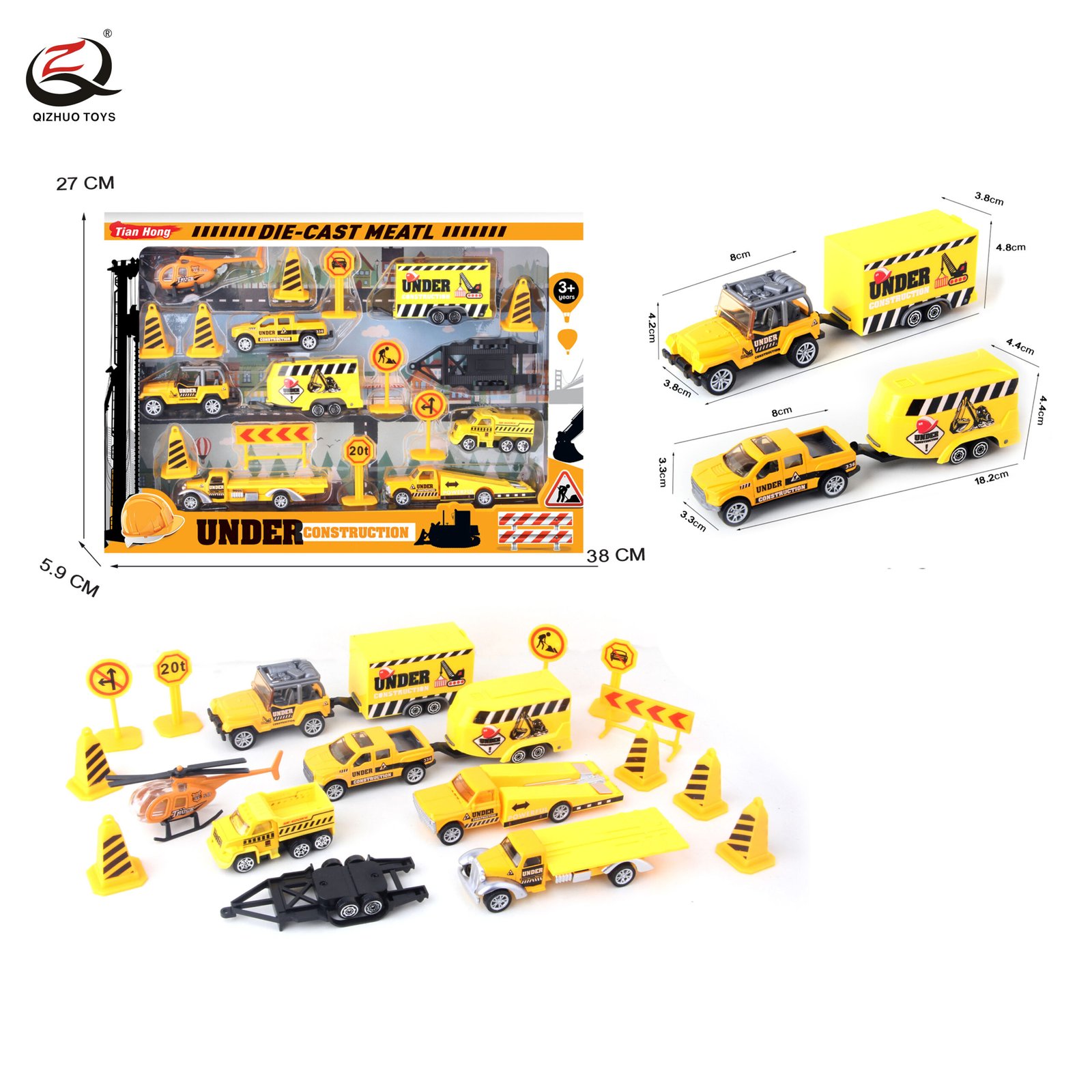 Scale 1:64 Engineering Series Die Cast Truck Set, Free Wheel